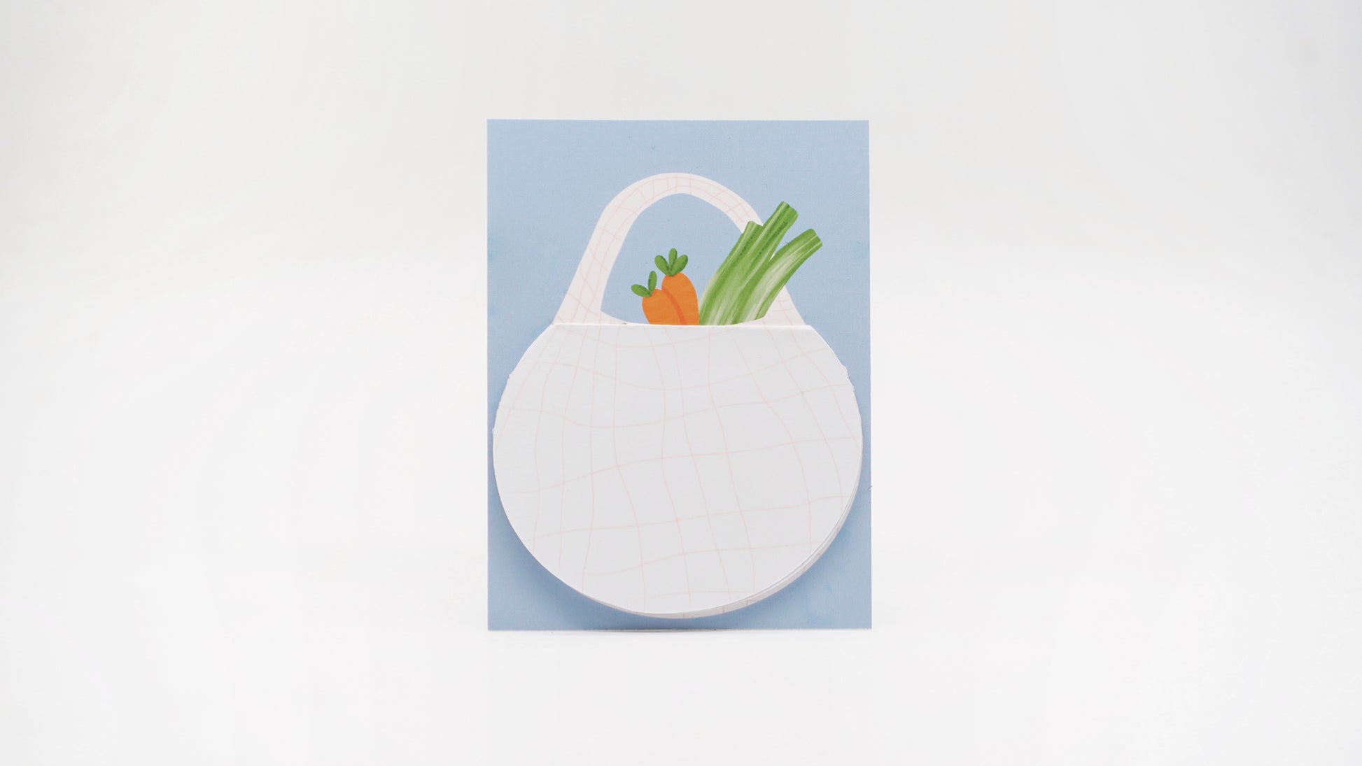 A cute and compact notepad shaped like a grocery bag, perfect for jotting down quick shopping lists. Tear off and go—simple and handy!