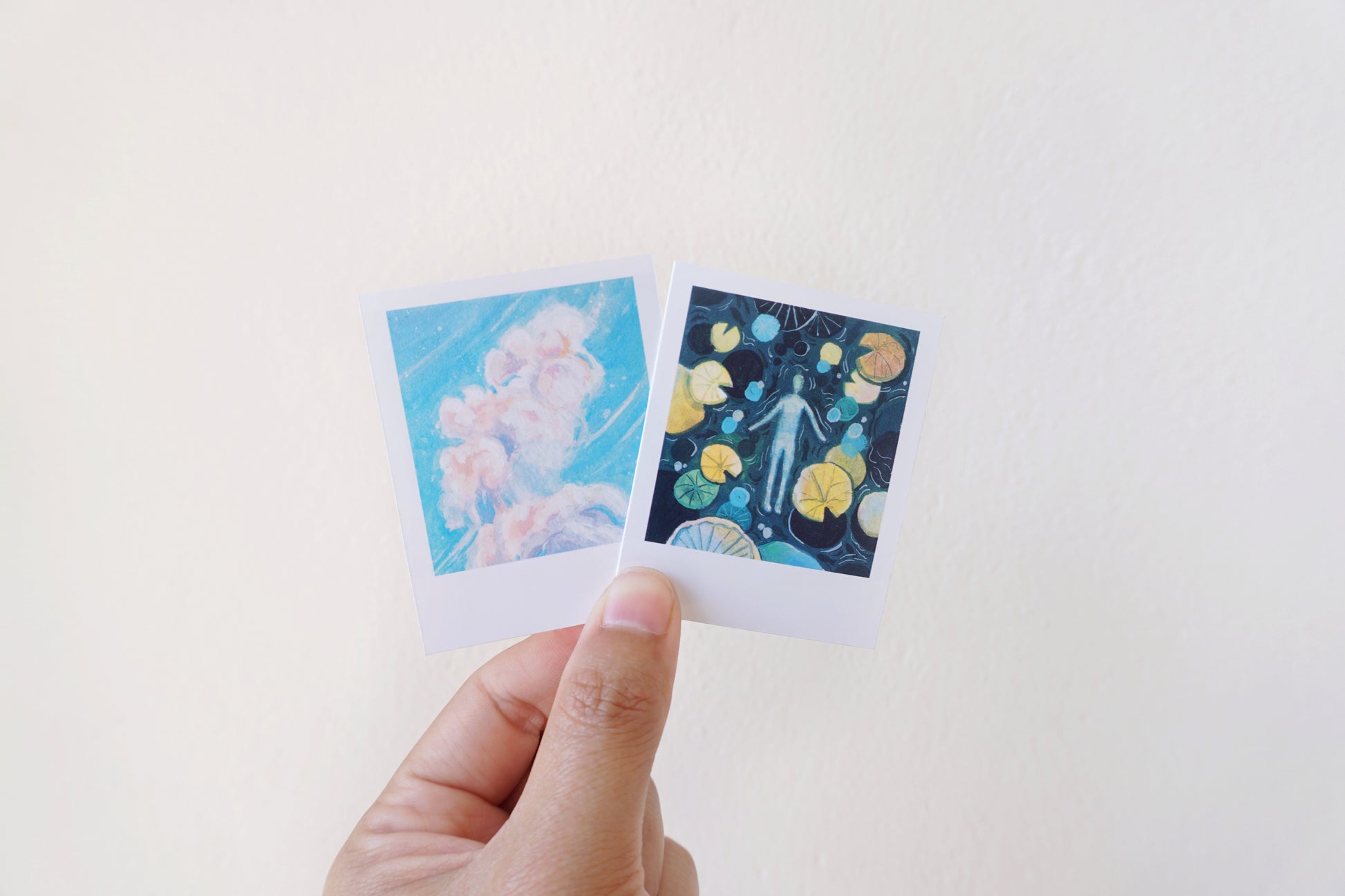 Add a dash of whimsy to your phone with our mini Polaroid paintings! Featuring 5 dreamy, surreal illustrations, these pocket-sized artworks are the perfect way to brighten your day and bring a little magic wherever you go!